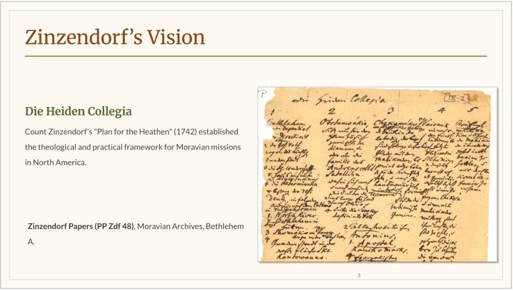 To return to the questions with which I began this presentation: did landscape play a role in the choice of mission in a way that was not only defined by utility and strategic advantage? Did landscapes themselves hold sacred value? And if so, how did this concept differentiate itself from indigenous concepts of sacred landscapes? I would argue that landscape of Shamokin was selected strategically but became sacred though the 8 years of the mission being active there. Shamokin was selected strategically: Shikellamy’s invitation, Six Nations council site, smithy opportunity. But eight years of dwelling transformed it. The missionaries noticed the river’s beauty (“like warp and weft”), tended Brother Hagen’s grave with pre-dawn visits, called their new house “this dear little place” and composed a hymn for it. They left “not without little tear.” Thus landscape accumulated sacredness through relationship, not geography.