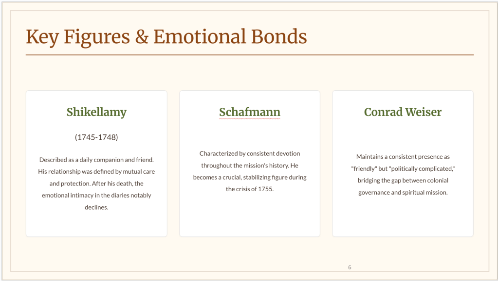 Therefore, landscape mattered beyond utility, but it became sacred through dwelling, not through inherent geography. Landscapes held sacred value for the Moravians – but through relationships, divine action, and community, not fixed spiritual power. This differed from Indigenous concepts – but both groups navigated place/mobility more than simple binaries suggest. The emotional geography reveals that vulnerability, not belief, shaped the sacred landscape. And, at least for a while, Indigenous agency determined who could stay.